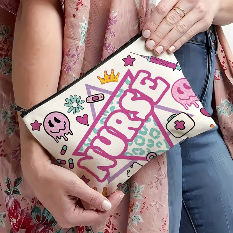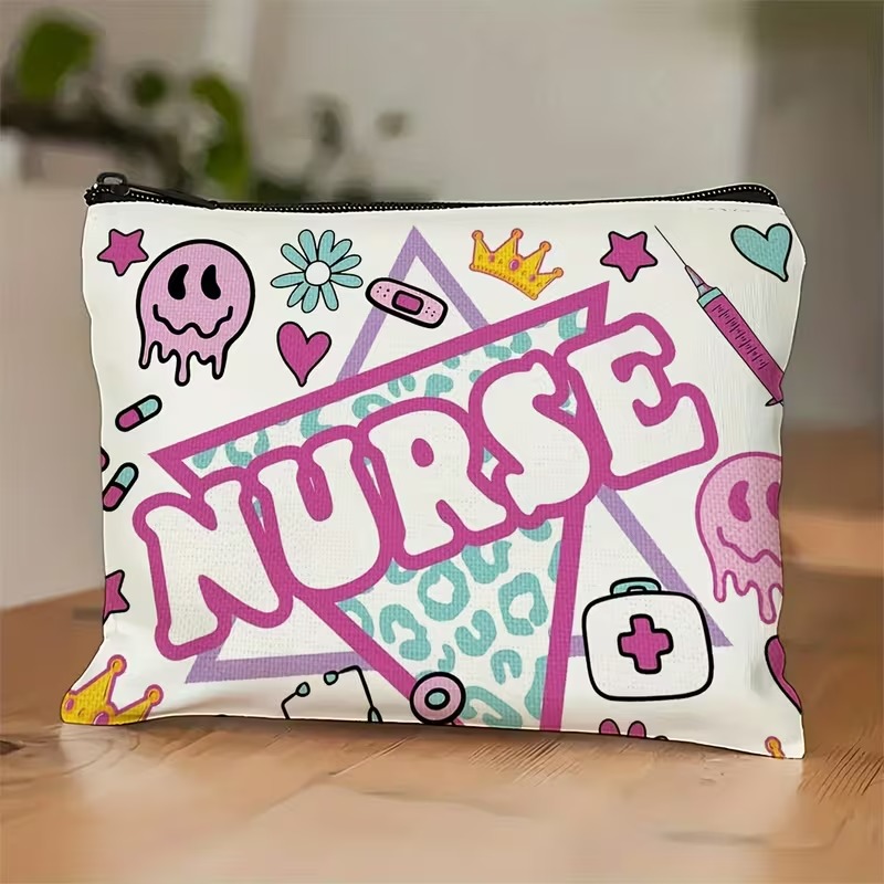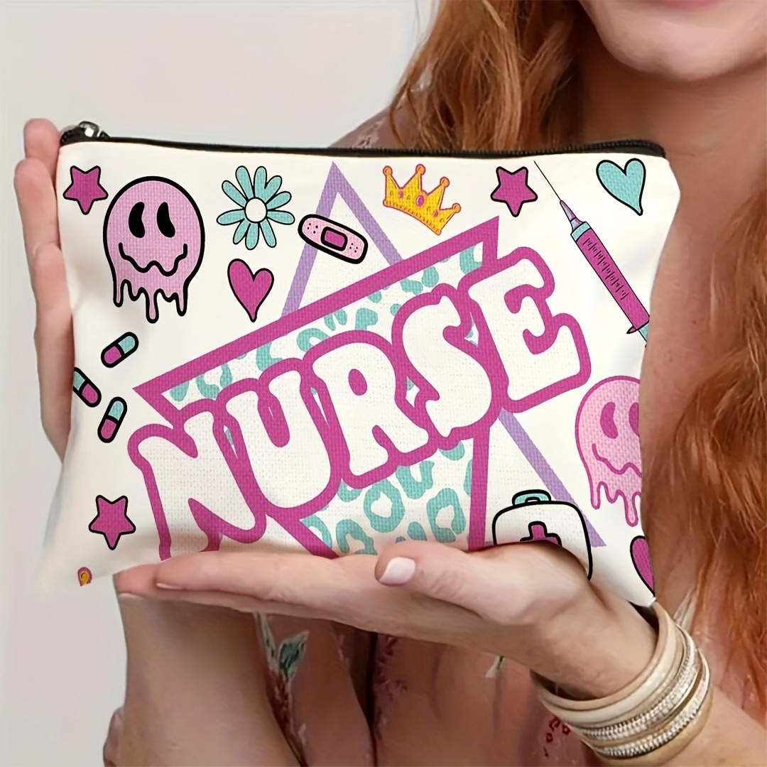 1pc Nurse-Themed Makeup Bag – Symbols & Nursing Essentials Design, Durable Fabric Compact Travel Cosmetic Pouch, Perfect Gift for Nurses, Nursing Students, Nurse’s Day, Graduation, Christmas, Nurse Accessories for Work