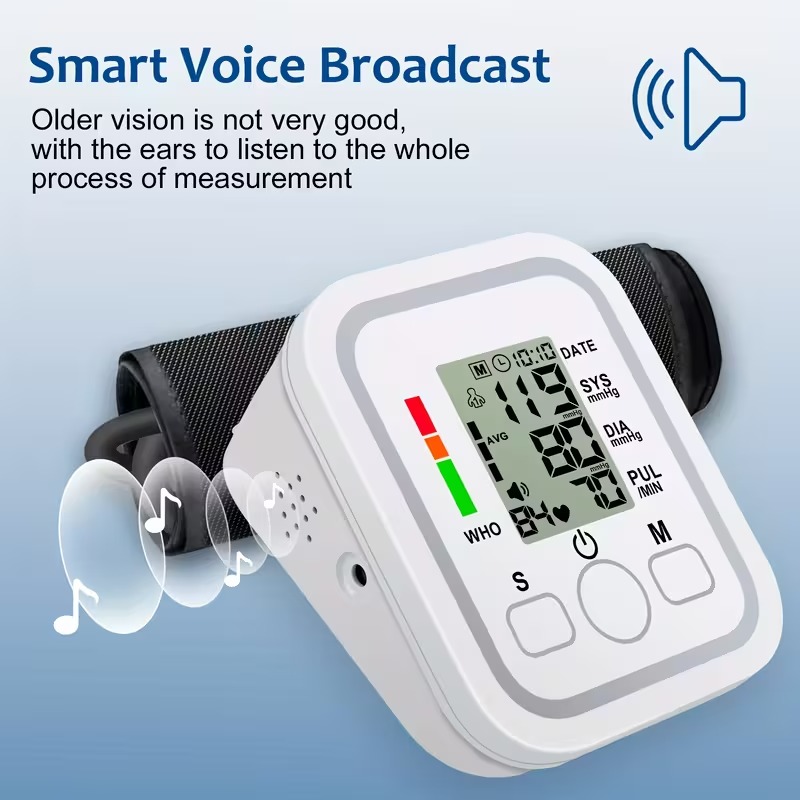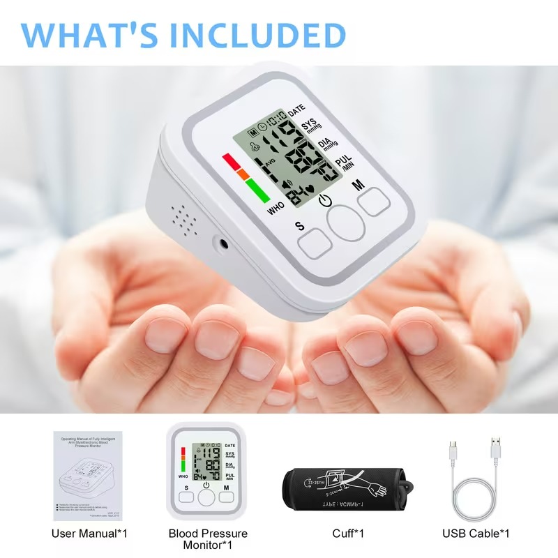 All-in-One Portable Upper Arm Blood Pressure Monitor | Large LCD Display, One-Touch Operation, Voice Reports, Hypertension Alerts, 2×99 Memory, Adjustable Cuff | Home & Travel Essential, Ideal for Seniors, Pregnant Women, Blood Pressure Management