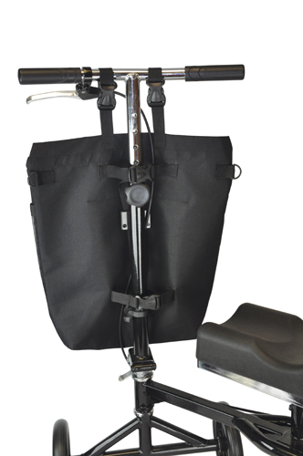 Universally sized to fit most manufacturers knee scooters * Effective, practical and convenient * An amazing mobility solution that allows the knee scooter user to conveniently and comfortably take their belongings with them and access them easily * Two large pockets with hook and loop closures hold all your belongings, including larger items such as laptops, purses, books, etc., unlike a traditional basket * Tested to hold up to 25 lbs of personal items * Simple to attach with quick-click buckles and adjustment straps – no tools required * Included shoulder strap makes this bag easy to carry when removed from the knee scooter * Internally hidden zippered 7″ L x 9″ W security pocket securely holds important items such as keys, wallets or money * Large main pocket dimensions: 16.5″ L x 16″ W * Mesh exterior pocket dimensions: 14″ L x 16″ W * Overall bag dimensions: 18″ L x 16.5″ W